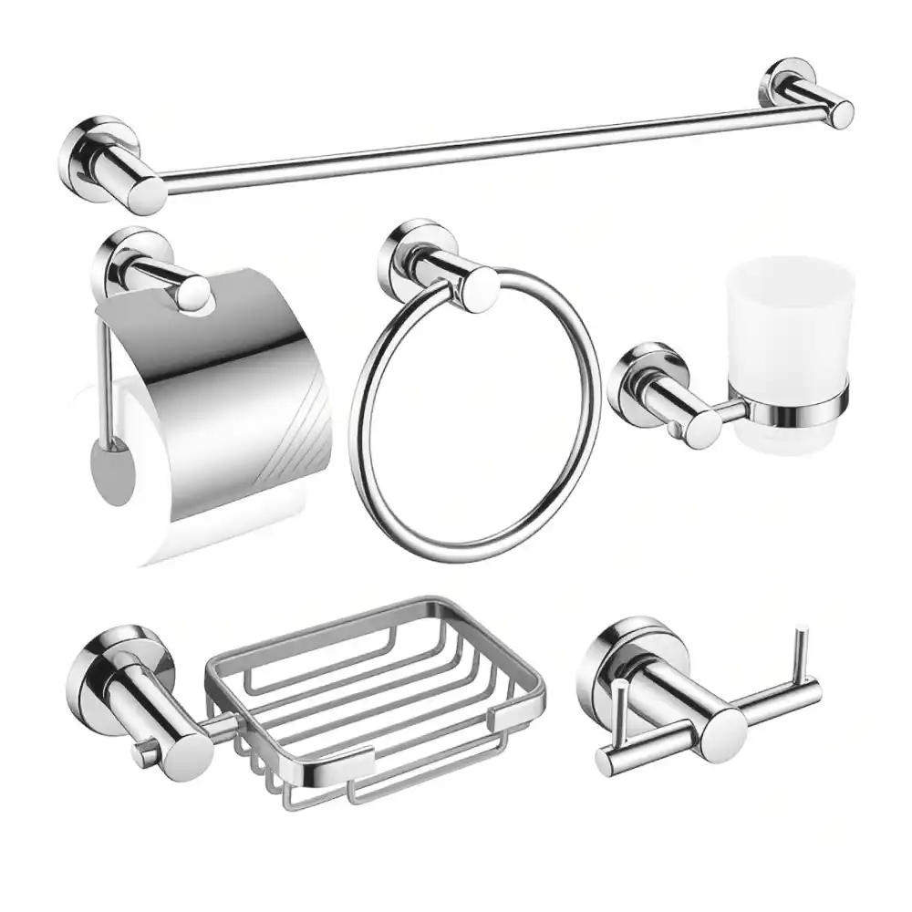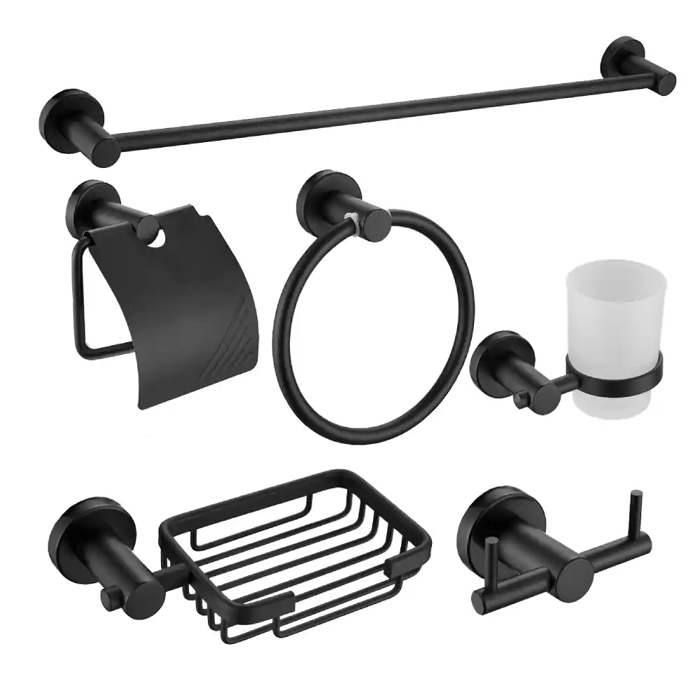 The MAAT Bath Accessory Set 18006-6P is a professional-grade 6-piece hardware collection engineered for complete bathroom organization. Manufactured from high-density materials, this set is built to endure high-moisture environments without rusting, pitting, or tarnishing. Its sleek, minimalist profile makes it an ideal choice for residential upgrades and commercial hospitality projects requiring a unified, modern aesthetic.