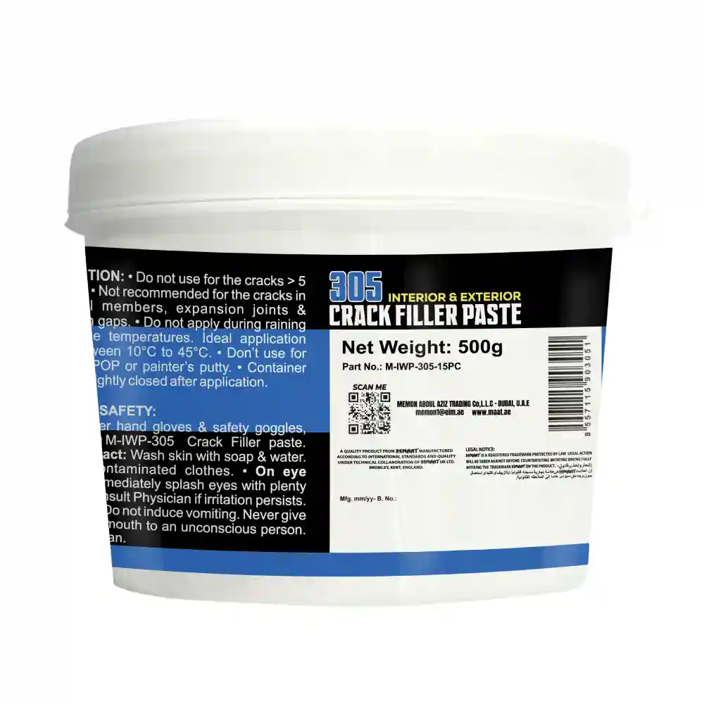 The core defining strength of this High-Strength Wall Crack Filler Paste is rooted in its cutting-edge chemical composition, which delivers unparalleled adhesion and enduring structural integrity. Formulated utilizing only carefully selected, high-grade polymers and specialized fillers, this paste achieves a remarkable and necessary balance between critical flexibility and intrinsic hardness. This inherent flexibility is paramount for successful exterior applications or for any interior areas that are subject to even minor structural movement, as it is the key mechanism that prevents the crack from ever reappearing. The product’s non-slump and high-build characteristics permit it to effectively fill deep or wide gaps and voids without the necessity for multiple, time-consuming layering applications, thereby significantly accelerating and simplifying the overall repair process . The final dried product exhibits a clean, neutral white appearance which provides the perfect base that is fully receptive to virtually all types of decorative paint and finishing coats, eliminating the requirement for excessive, dedicated priming and guaranteeing the true color rendition of the final topcoat. The convenient, ready-to-use format, supplied in a practical tub “ means there is zero material waste and absolutely no messy mixing required—simply open the container, precisely apply the paste, and smooth the area to your desired finish. This factor of immediate convenience, seamlessly combined with its certified professional-grade performance, firmly establishes the High-Strength Wall Crack Filler Paste 500GM as an absolutely indispensable component in the toolkit for any serious renovation or structural repair project. The paste is optimally applied using a standard issue putty knife or a trowel, ensuring consistently smooth and effortless application across all surfaces. Furthermore, this versatile material is also perfectly suitable for filling minor gaps around window and door frames, sealing small-scale leaks, and comprehensively preparing a variety of surfaces prior to the installation of tiling or paneling. The exceptional, guaranteed resistance to cracking, flaking, and crumbling ensures a permanent, durable repair that is designed to endure for many years, effectively protecting the underlying structure and significantly enhancing the aesthetic quality of the repaired area. Its comprehensive performance profile fully adheres to the most stringent quality and durability demands of modern construction and advanced renovation practices.