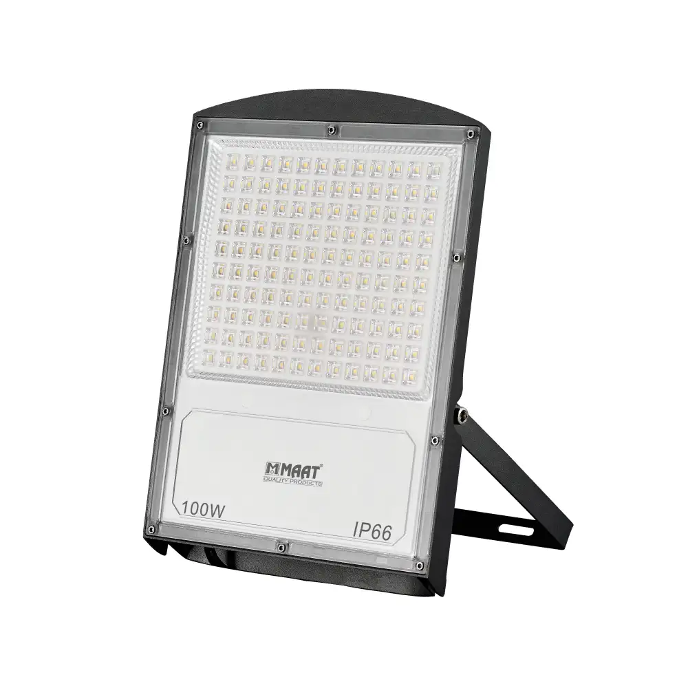 The durability of the MAAT G8 LED Flood Light 100W is secured by its IP66 Ingress Protection rating. This industrial-grade rating guarantees that the light engine is completely protected against dust ingress and can safely withstand powerful jets of water, confirming its suitability for deployment in any external environment, from harsh, dusty landscapes to areas with frequent heavy rainfall or high-pressure cleaning.