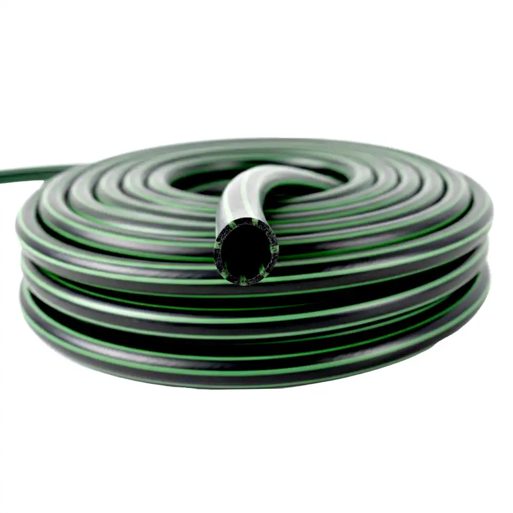 The superior performance of the Heavy Duty Reinforced Water Hose is built into its multi-layered design, featuring a distinct green-striped reinforcement pattern.