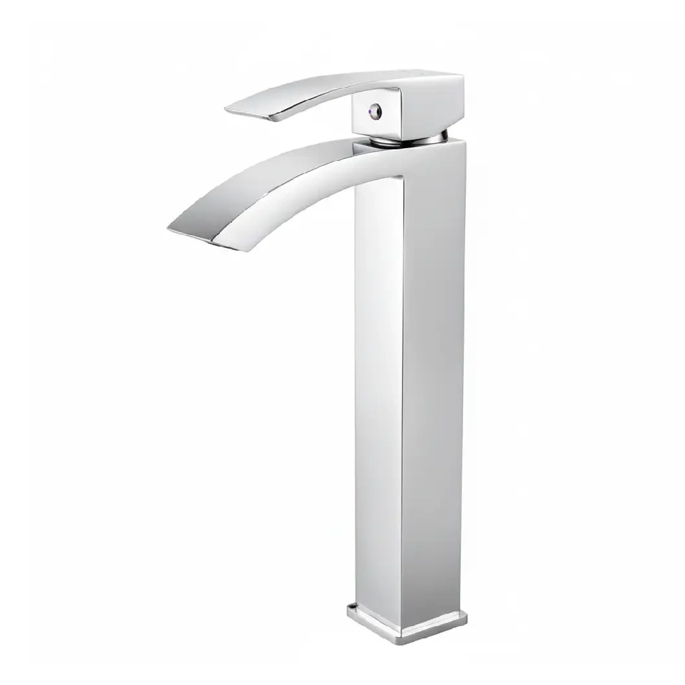 MAAT Sink Mixer M-CA16X60C is an architectural masterpiece designed to perfectly complement modern vessel sinks (countertop basins). Its striking, extra-tall profile, defined by sharp 90-degree angles and a sleek lever handle, makes an unmistakable modern statement. Finished in a dazzling Mirror Chrome, this High-Rise Chrome Basin Faucet is the ultimate choice for creating a luxury, minimalist vanity setup.