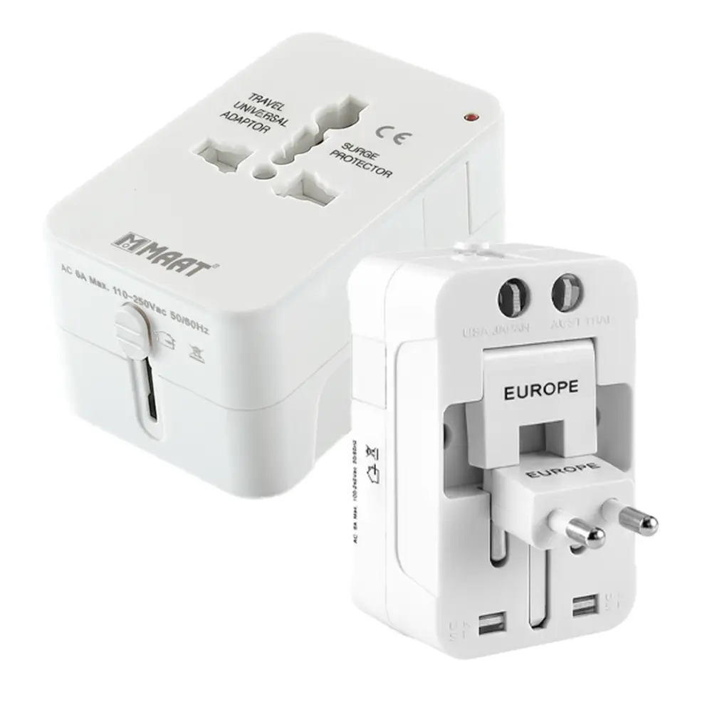 Beyond its role as a physical plug converter, the MAAT Universal Travel Adapter MET-722 serves as a robust High-Efficiency USB Power Interface. It is equipped with multiple high-speed USB ports, allowing users to charge smartphones, tablets, cameras, and power banks simultaneously alongside a primary AC device.1 This eliminates the need for carrying multiple wall bricks, as the MET-722 handles the energy distribution for your entire mobile ecosystem. The integrated smart-charging chip automatically identifies the connected device to deliver the optimal current, ensuring rapid replenishment of battery levels while maintaining the highest standards of energy efficiency.2